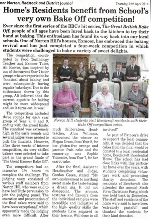 In the spirit of the Great British Baking, Norton Hill held a bake sale and kindly donated the cakes to Beechcroft. We have close links with Norton Hill and our residents really enjoy spending time with the young children. Thank you for the lovely day.